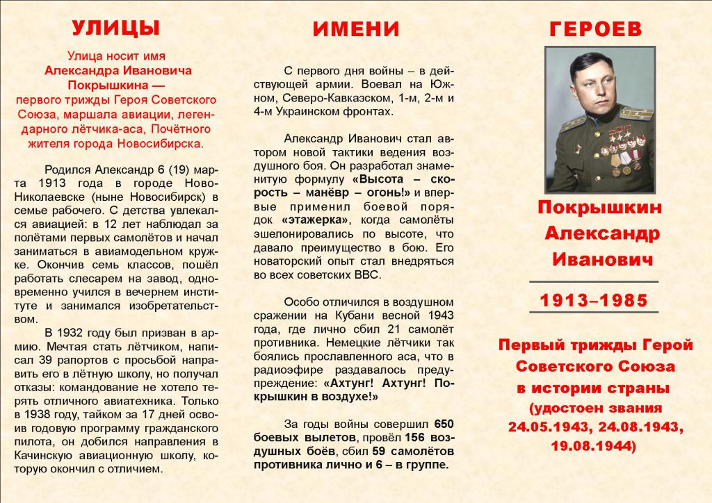 Имя Покрышкина для Новосибирска — святое. Оно носит: