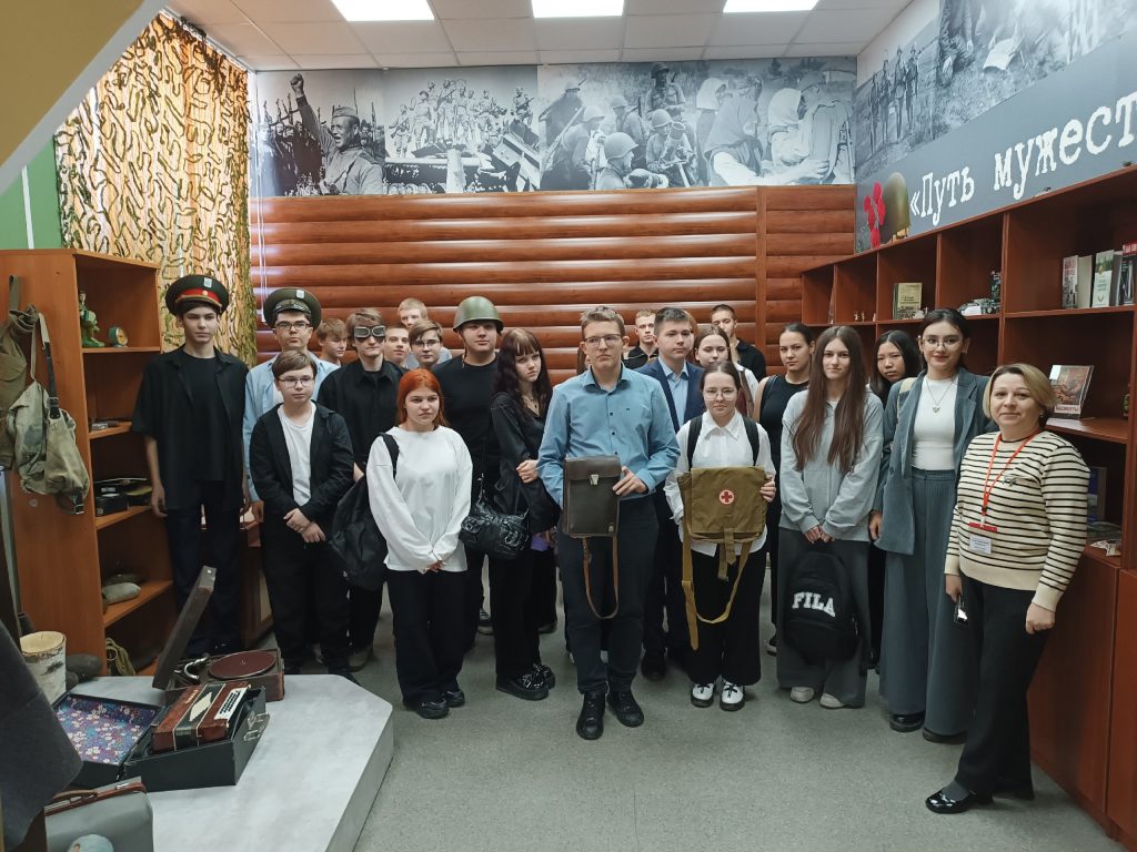 По завершению мероприятия, школьникам было предложено пройти в нашу музейную комнату «Блиндаж», чтобы ознакомиться с подлинными экспонатами военного быта солдат. Ребята так увлеклись, что примерили на себя фуражки, каски, командирские сумки и сделали памятные фотографии.