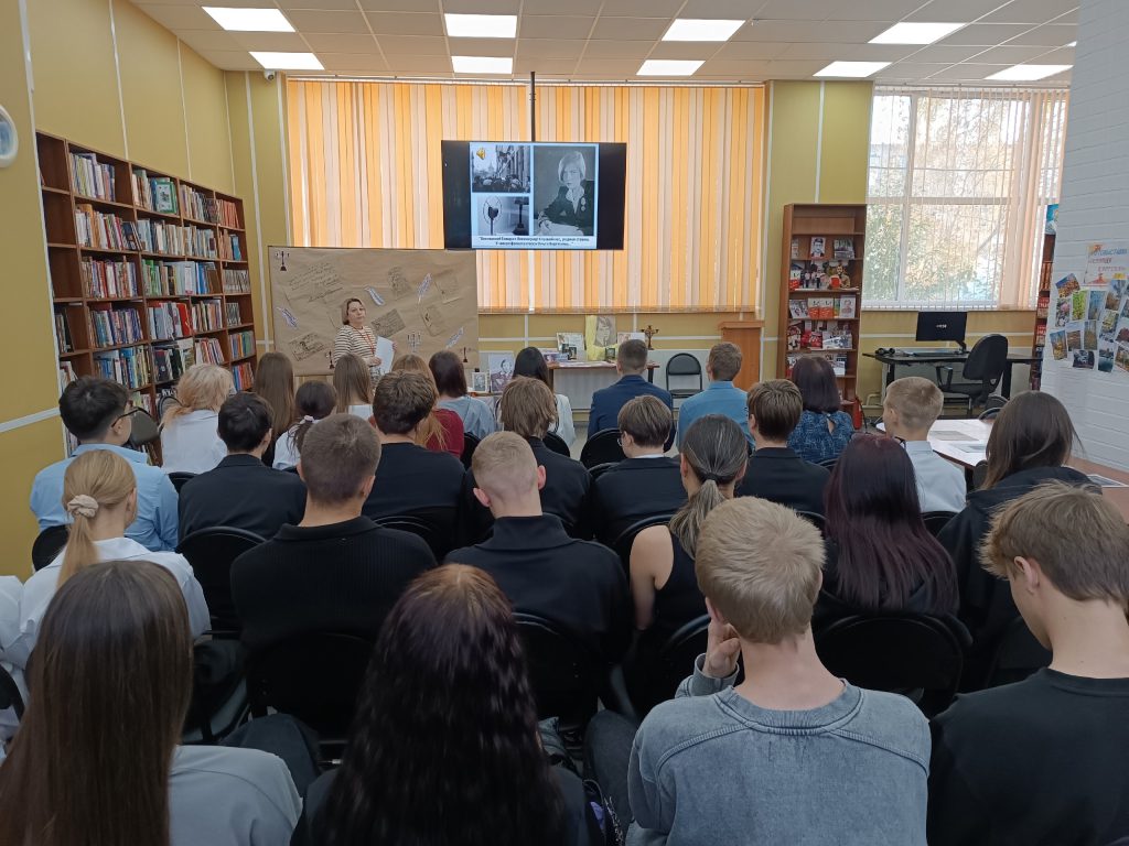 Ребята в течение часа узнали о непростой судьбе О. Берггольц, о её подвиге во время блокады Ленинграда и творчестве. Прослушали произведения поэтессы, такие как: «Нам от тебя теперь не оторваться…», «Ленинградская поэма», «Второе письмо на Каму» и другие.