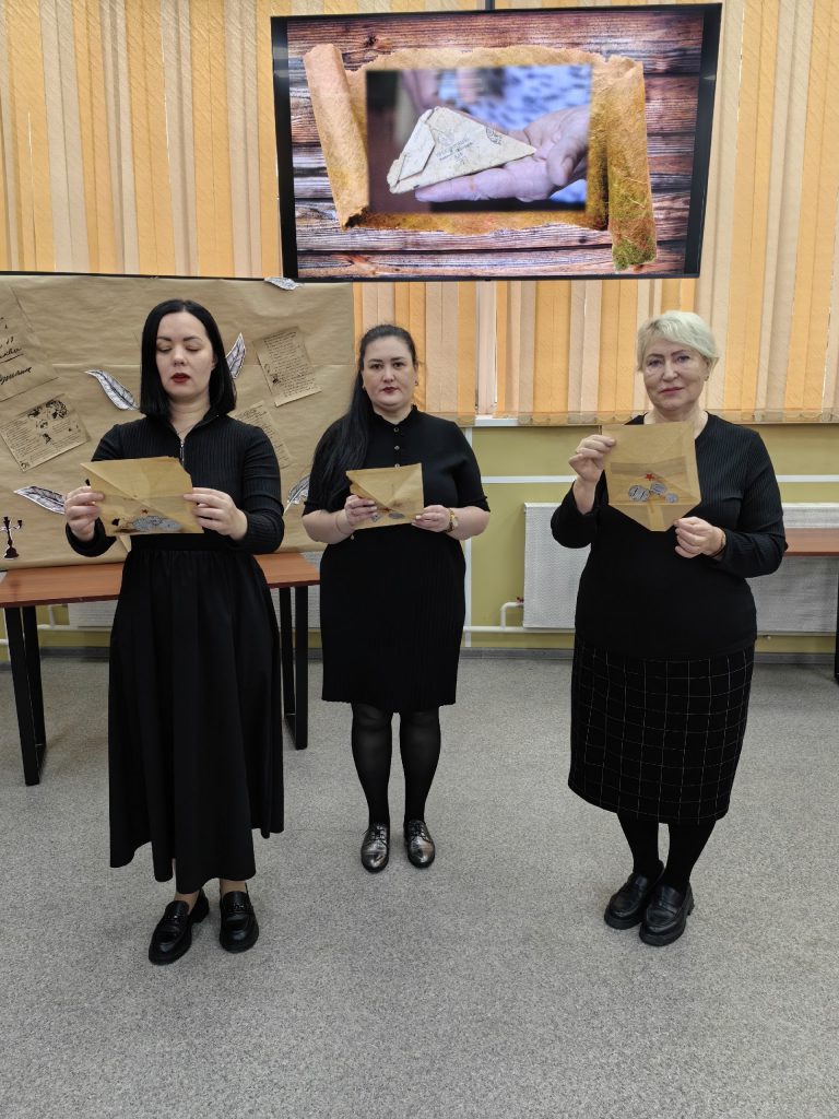 📜В программе звучали стихи Ю. Коринец, М. Львова, М. Исаковского, а также была объявлена минуту молчания — дань уважения и скорби. Юные участники читали фронтовые письма — треугольники, как напоминание о тех тяжёлых и героических временах.