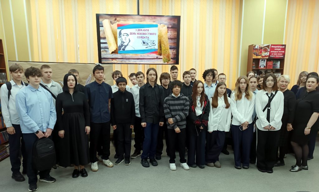 🕯 4 декабря в рамках мероприятий, посвящённых памяти наших защитников, в модельной библиотеке им. Б. А. Богаткова прошёл урок памяти «Имя солдата неизвестно».